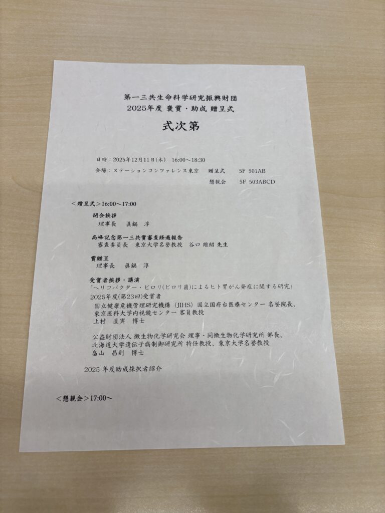 公益財団法人 第一三共生命科学研究振興財団 贈呈式に参加しました (2025.12.11)